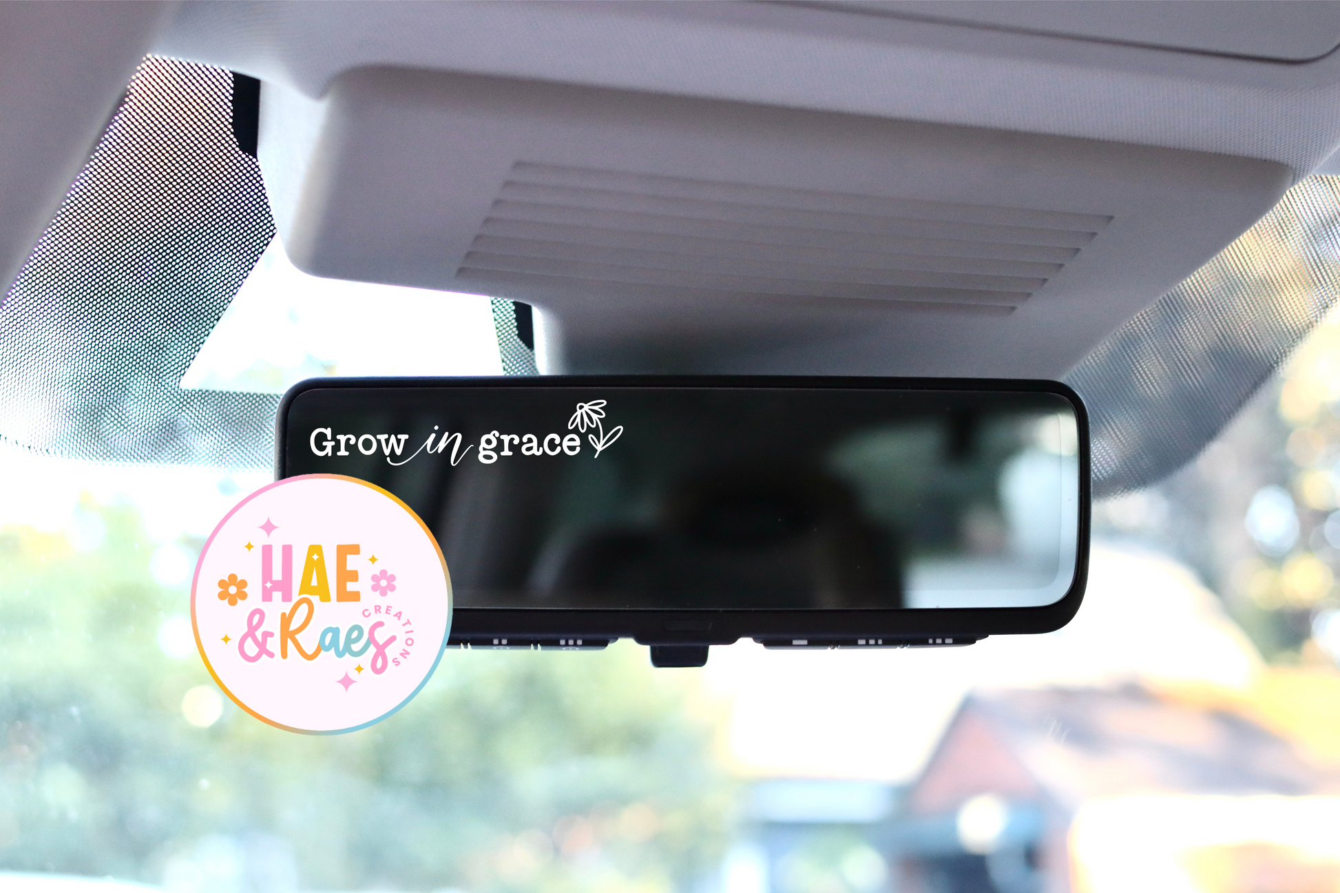 3.5-4 inch mirror decal. Can go on any mirror/flat surface doesn't have to be in the car!